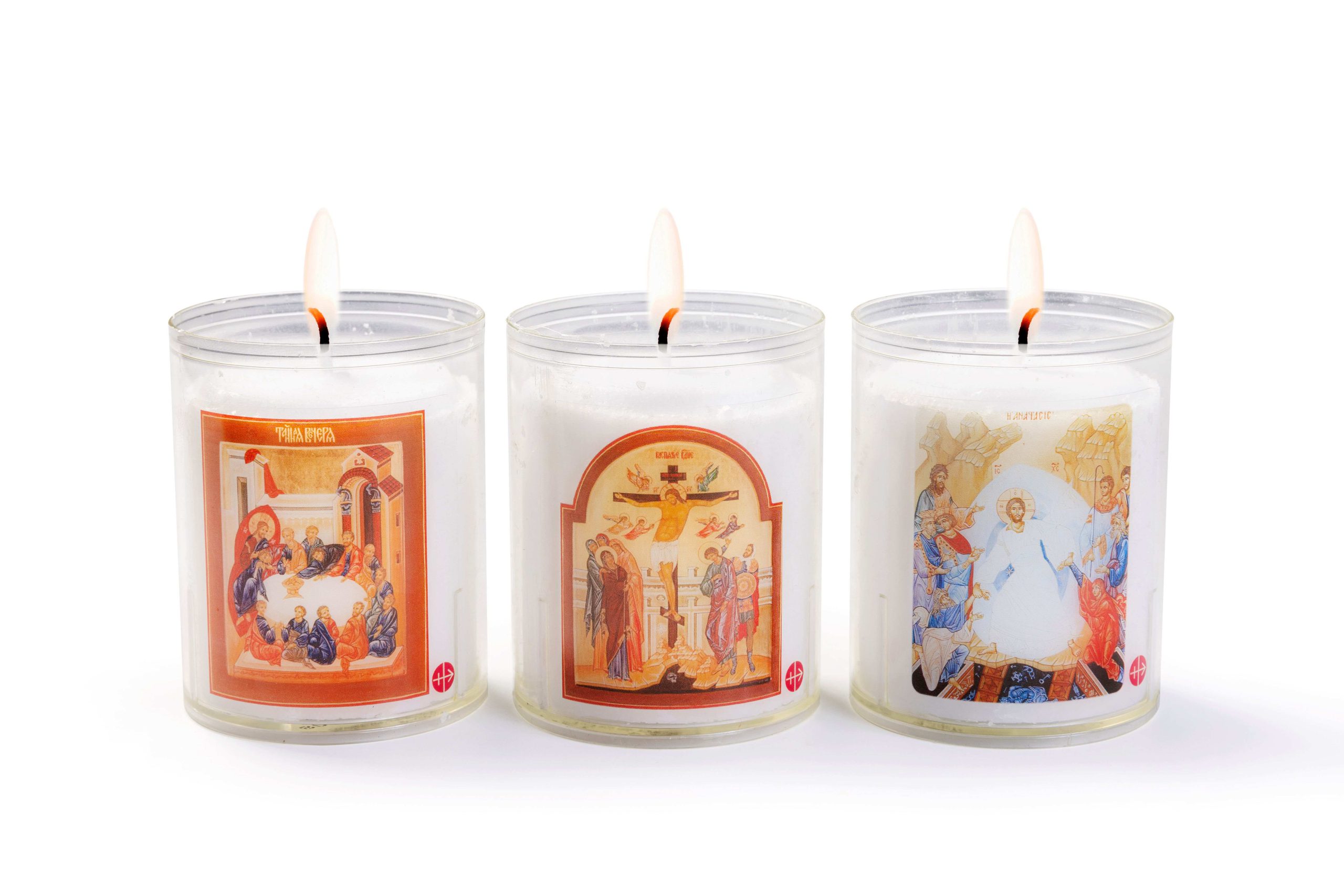 Mit diesen Abbildungen der Ikonenschreiberin Lucia Lipkens-Janssen erinnern Sie sich an das Abendmahl Jesu am Gründonnerstag, an die Kreuzigung am Karfreitag und an die Auferstehung an Ostern.