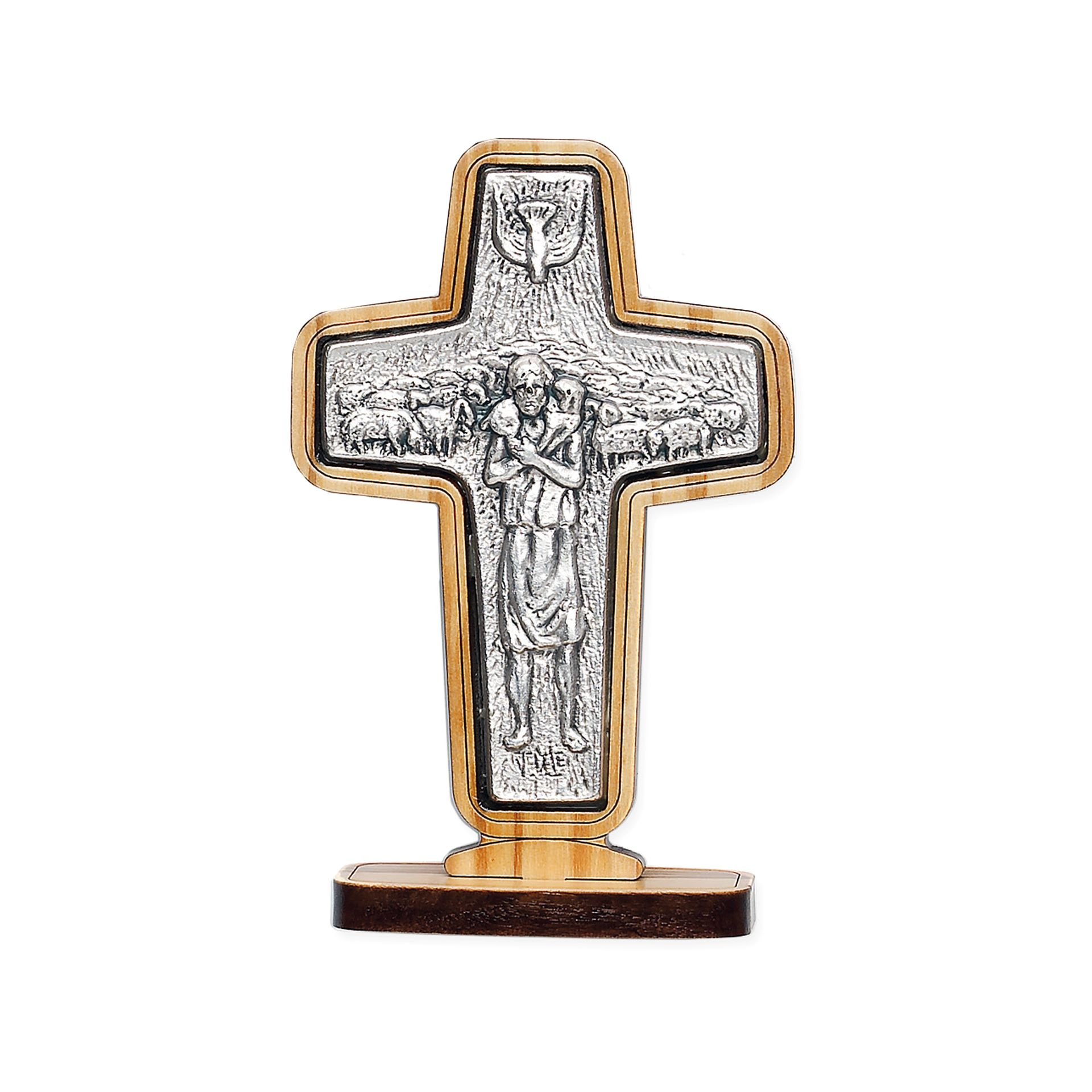 Jesus ist der wahre Hirte, der Seine Schäfchen schützt, kennt und liebt, wie auf diesem Kreuz des guten Hirten dargestellt ist. Der Gute Hirte sorgt für uns alle.  Dieses Kreuz ist ein passendes Geschenk für jede Berufung.