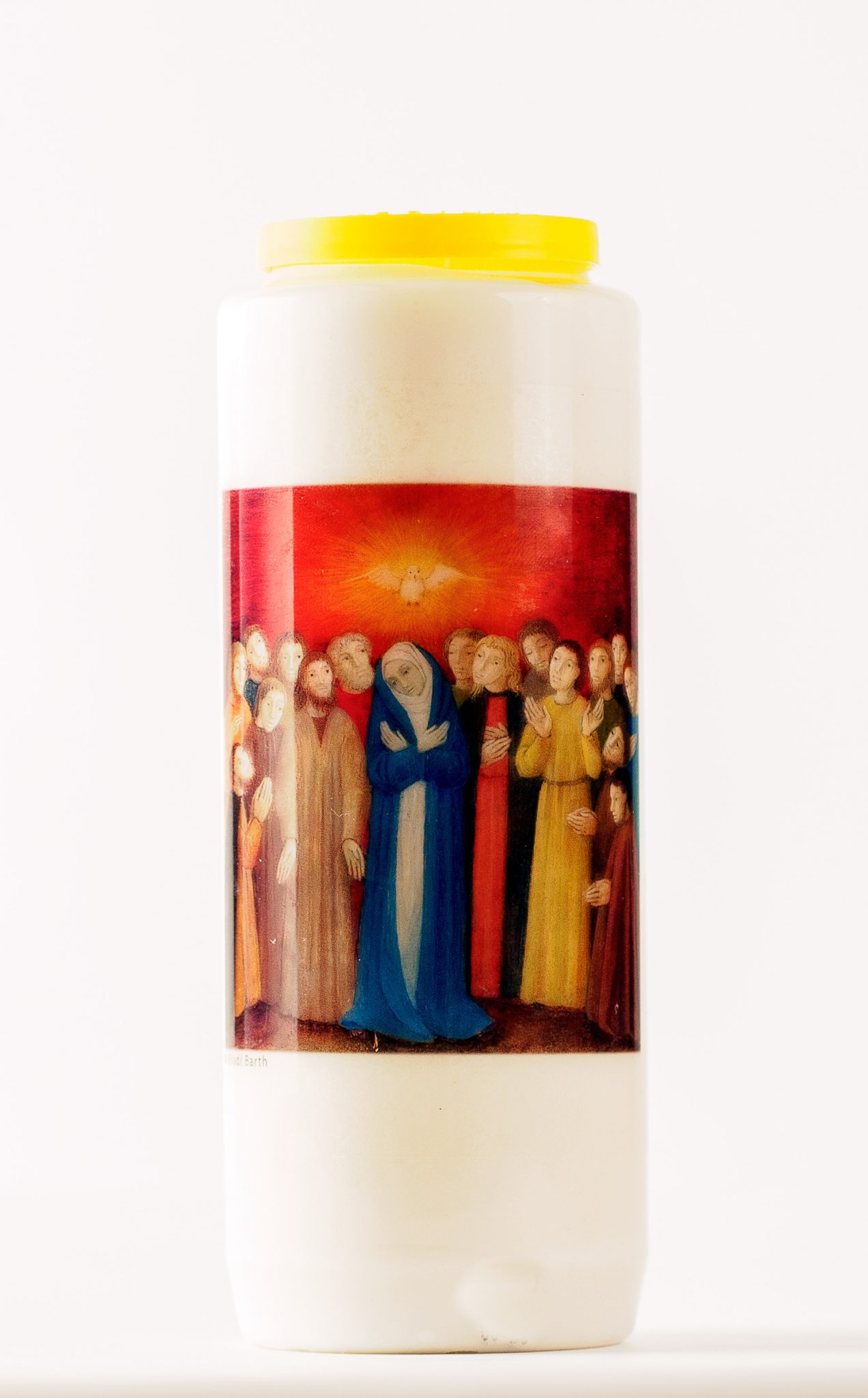 Nach der Himmelfahrt Christi saßen die Apostel neun Tage betend beisammen. Beten auch Sie zur Vorbereitung auf Pfingsten vor dieser Novenenkerze um die Gabe des Heiligen Geistes.