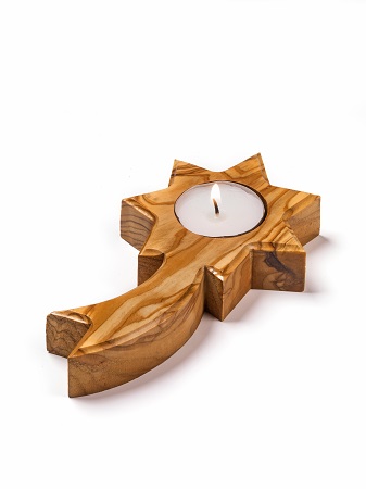 Teelichthalter aus Olivenholz in Form eines Kometen