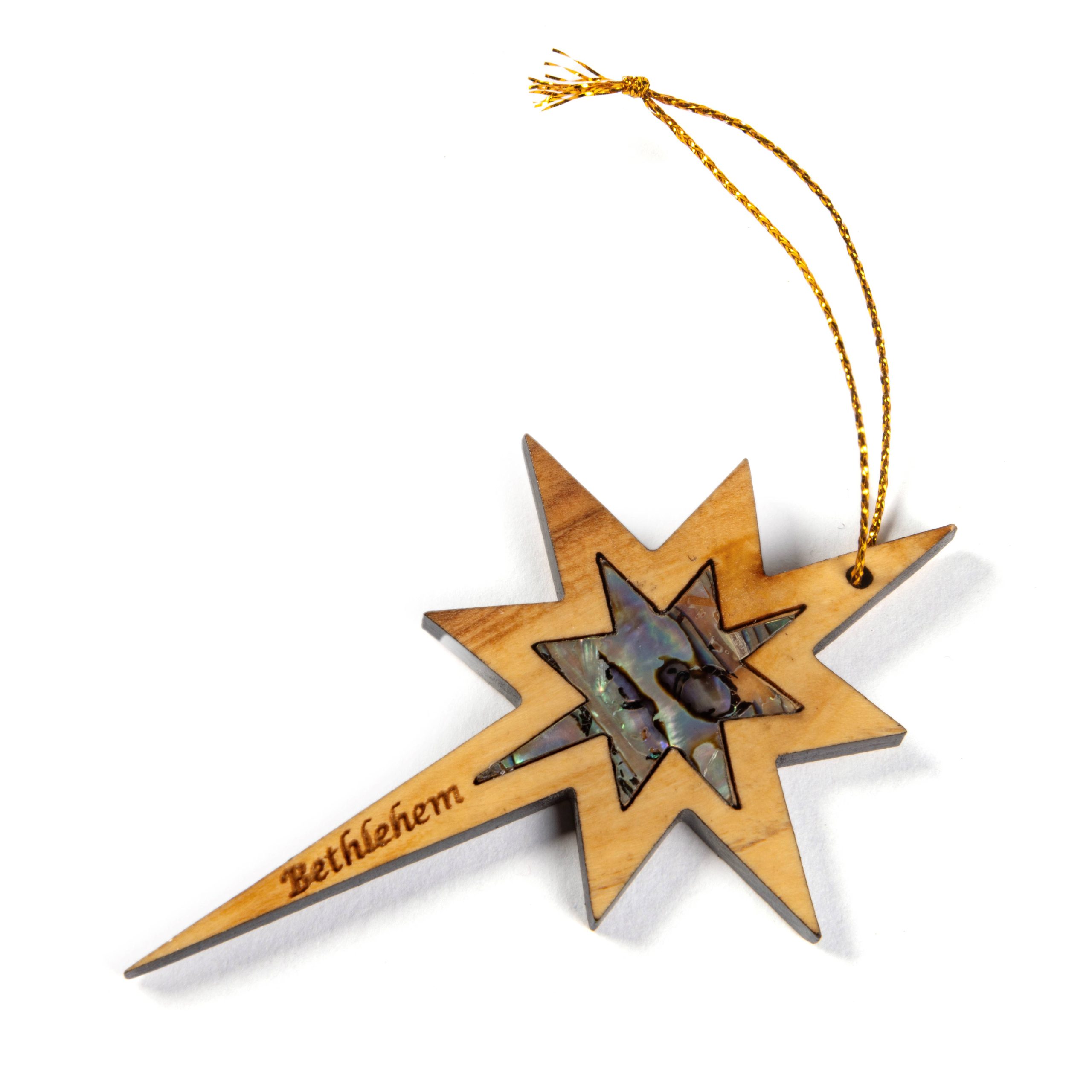 Weihnachtsstern aus Olivenholz mit Perlmutt