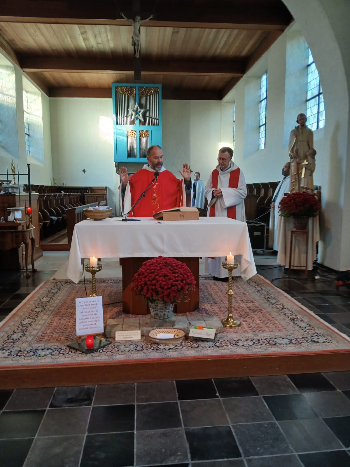 Zu dieser „Red Week“ gehörte auch das Fest des Schutzpatrons unserer Pastoraleinheit Sankt Trudo. Am Samstag, dem 23. November, dem Festtag des Heiligen Trudo, beteten wir im Rahmen der Fürbitte für alle verfolgten Christen. (Wim Ceunen)